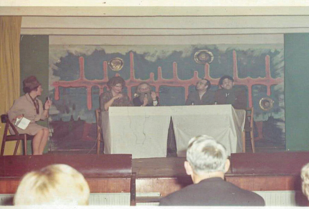 Jeg var Cleo i “Spørg Bare” sketchen, Harry Gustavsen var Erhard Jacobsen, Smerup var Simon Spies, Jeg husker ikke hvem der var John Price og Fru Smerup interviewede os.